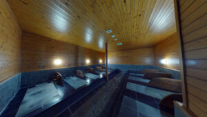 温められた天然鉱石の上に寝転び、身体を温めることによって