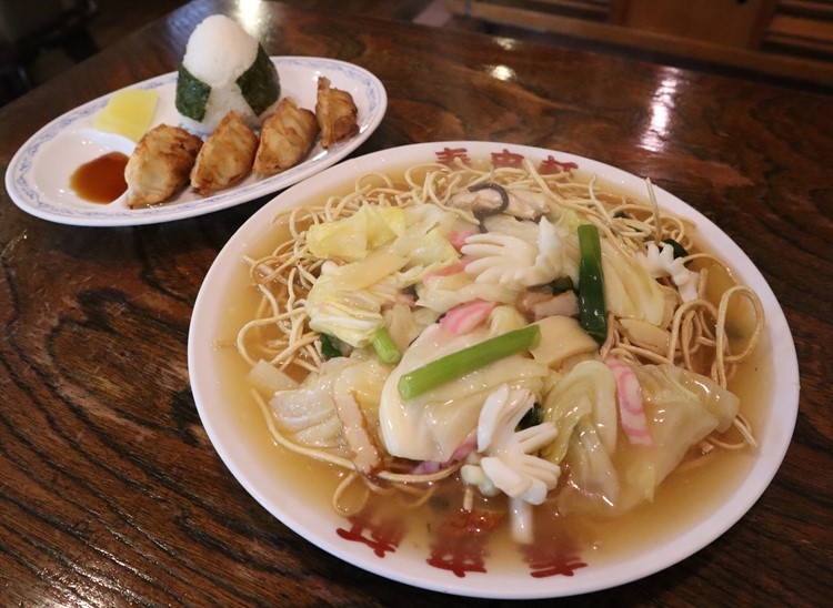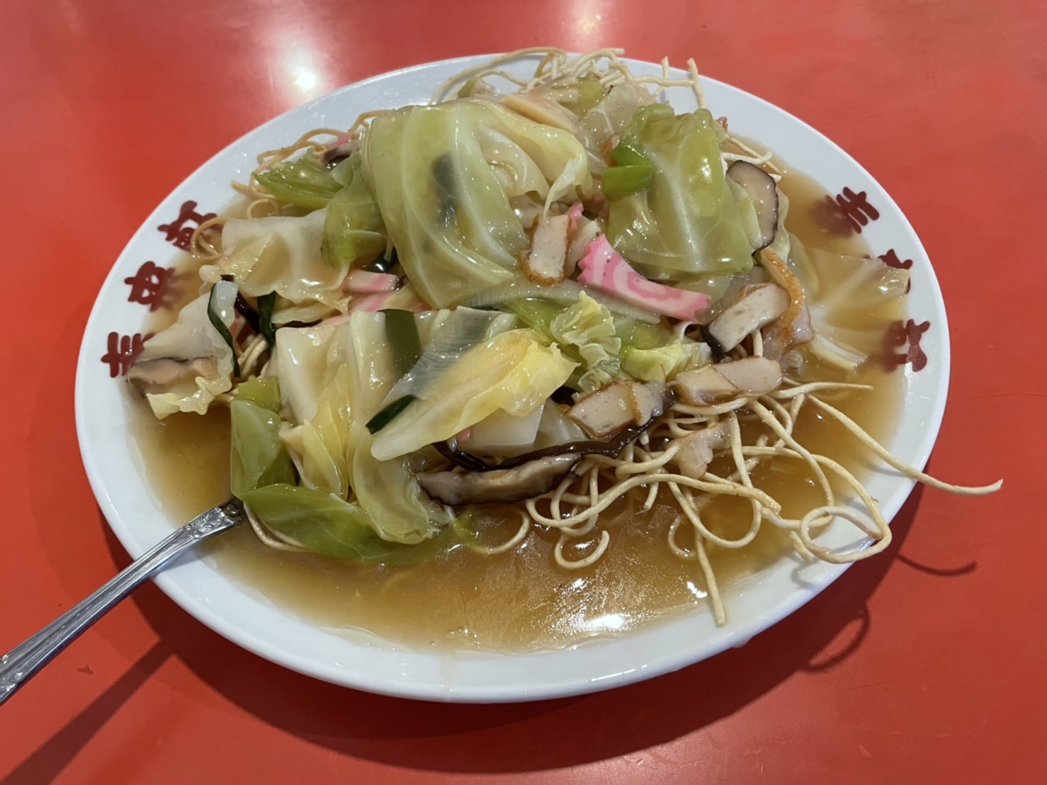 かた揚げ麺に野菜たっぷりのあんかけ。