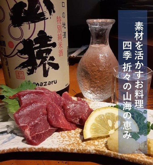 山口県産食材や全国からのこだわり食材が楽しめるお店。 炭火を囲んだカウンター席では目の前で焼かれるお料理を味だけでなく目や耳、五感でお楽しみいただけます。 その他、落ち着ける個室などもあるのでさまざまな用途にご利用いただけます。 自慢の炭火焼を山口の地酒とご賞味ください。